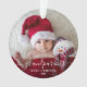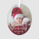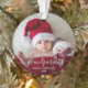 Ajudem-nos a celebrar o seu primeiro neto com este belo ornamento moderno do keepsasawn. O texto branco lê "Nosso primeiro Natal como avós", com a palavra "avós" em elegante manuscrito com flores antes e depois. Substitua facilmente a imagem de amostra pela sua foto favorita do novo bebê, e adicione o seu nome e o ano. Um filtro de gradiente escuro ajuda a tornar o texto pop.