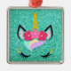 Ornamento XMAS de Glitter Teal Personalizado do Unicórnio