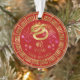 Esse design de ornamento acrílico especificamente para o ano do cobra, (nasceres em 1917, 1929, 1941, 1953, 1965, 1977, 1989, 2001, 2013), é criado em tradicional vermelho e ouro e apresenta um cobra de folha de ouro sobre um fundo colorido de fogos de artifício adornado com o personagem chinês para o "ano do cobra" e uma elegante fronteira geométrica. Faz um presente único de Ano Novo ou aniversário. Procure ID542 para ver outros símbolos de zodiac e produtos adicionais com este design.