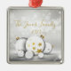 As vibrações clássicas e calmas de Natal são capturadas com este ornamento de ornamentos. Apresentando a imagem de ornamentos de ouro e branco em um pano de fundo branco com lindas estrelas.: Personalize todo o texto, frente e verso! .: Estão disponíveis artigos de coordenação, assim como toneladas de outros artigos de Natal!