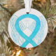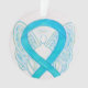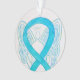 O ornamento do anjo da guarda apresenta a pintura de um anjo azul-turquesa. A arte da fita de anjo de consciência azul-turquesa pode ser personalizada com mensagens personalizadas para fazer ornamentos de causas de excelentes ou pendentes para arrecadações de fundos, conscientização, presentes de Natal ou feriados, ou outros eventos ou ocasiões especiais.