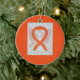 O ornamento do anjo da guarda apresenta a pintura de um anjo de fita de reconhecimento de um gato laranja. A arte da fita de anjo de consciência de gatos laranja pode ser personalizada com mensagens personalizadas para fazer ornamentos de causas de excelentes ou pingentes para arrecadadores de fundos, presentes de Natal ou feriados, ou outros eventos ou ocasiões especiais.