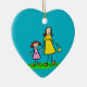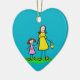 Mãe e filha dão as mãos. O vestido da mulher dizia "mamãe" e o vestido da menina dizia "eu". A família tem cabelo vermelho e pele clara. A imagem vem em várias versões étnicas. Também não há uma versão de desenho a cores. Personalize o ornamento da mãe e da filha com nomes familiares ou uma mensagem pessoal para uma mãe especial ou presentes no pingente do ornamento da mamãe! Você pode fazer ornamentos familiares personalizados para um presente especial de Dia de as mães, novas Mamães, Reunião Familiar ou outros presentes personalizados de arte familiar!