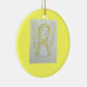 O ornamento do anjo da guarda apresenta a pintura de um anjo de fita de reconhecimento amarelo. A arte da fita de anjo de consciência amarela pode ser personalizada com mensagens personalizadas para fazer ornamentos de causas de excelentes ou pendentes para arrecadadores de fundos, presentes de Natal ou feriados, ou outros eventos ou ocasiões especiais.