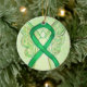 O ornamento do anjo da guarda apresenta a pintura de um anjo da fita de reconhecimento verde. A arte de fita de anjo de consciência verde pode ser personalizada com mensagens personalizadas para fazer ornamentos de causas de excelentes ou pendentes para arrecadadores de fundos, presentes de Natal ou feriados, ou outros eventos ou ocasiões especiais.
