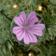 Este ornamento bonito estilo pingente apresenta uma fotografia detalhada de uma flor selvagem roxa bonito com cristas nas pétalas. A fotografia foi tirada na Inglaterra. A macro fotografia foi usada para capturar a delicada beleza desta linda flor.