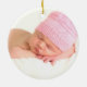 Flor de poinsettia e flocos de neve de inverno elegantes, projetados em ornamentos personalizados de preservação de fotos. Celebre a época mais maravilhosa do ano, decorando sua casa com este adorável e doce ornamento de bebê que mostra a foto de seu precioso novo bebê! É fácil personalizar o ornamento com sua própria foto e redação. Todo o texto de amostra pode ser totalmente personalizado com sua própria redação.