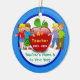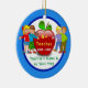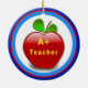 Ornamentos de professores em frente e verso Super Cute baratos 2 Personalizados com 2 modelos de caixa de texto para digitar em ANO ou ANOS, NOME do professor e ou TEXTO ou apenas Excluir o texto temporário. Excelente de presentes de professores. Meninos e meninas mostrando presentes de "Professor A+". Uma maçã grande na parte de trás desses ornamentos de professores.