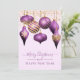 Esta elegante placa de feriado apresenta belos Enfeites de natal em roxo e ouro com luzes de cordas de ouro sobre fundo de lavanda macio. Texto "Feliz Natal e Feliz ano novo" na frente, e saudações pessoais e nomes de família no verso podem ser facilmente alterados clicando em "Personalizar". Perfeito para o feriado.
