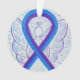 O ornamento do anjo da guardiã apresenta a pintura de um anjo da fita de reconhecimento azul e roxo. Fita de consciência azul e roxa significa suporte para a sensibilidade pediátrica a derrame e artrite reumatoide. A arte da fita de anjo de consciência azul e roxa pode ser personalizada com mensagens personalizadas para fazer ornamentos de causas de excelentes ou pendentes para arrecadadores de fundos, presentes de Natal ou feriados, ou outros eventos ou ocasiões especiais.