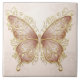 This vibrant ceramic tile features a stunning jewel-toned butterfly surrounded by swirling florals and delicate blossoms. Painted in rich shades of magenta, fuchsia, gold, and plum, the intricate detailing gives the artwork a luminous, almost stained-glass quality. Soft pastel greens in the background add a gentle glow that enhances the butterfly’s vivid wings and elegant curved accents.