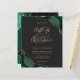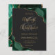 Uma esmeralda aquarela verde agate design aparada com falso brilho de ouro aparece em dois cantos deste elegante design. Personalize-o com os nomes dos casais em um guião de escrita manual dourada sobre uma grande e grande cinza. Adicione os detalhes do casamento em uma placa colorida dourada e fontes itálicas em um fundo preto ardente. O verso apresenta um design verde e dourado correspondente.