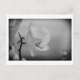 Foto preta e branca de uma orquídea num cartão postal.