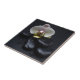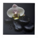 Calmante e orquídea branca mínima em contraste estrelado com design de pedra congelada preta.