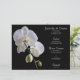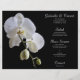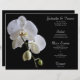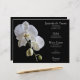 Avise aos seus hóspedes o que eles vão jantar com a Orquídea Branca bonito no Menu Negra. Personalize-o com os detalhes da refeição que servirá no almoço de casamento, almoço, janto de ensaio ou recepção de casamentos, adicionando a salada ou o primeiro curso, o primeiro curso ou o segundo curso e a sobremesa ou o terceiro curso. Este elegante cardápio de casamento florescente personalizado apresenta uma fotografia botânica de uma flor branca de orquídea falaenopsis no caule com um fundo preto.