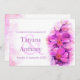 Linda flor de orquídea de cor aquosa, estilizada, com pétalas em forma de coração, em convite de casamento floral, roxo e cor-de-rosa. Sombreado em matizes de orquídeas radiantes cor-de-rosa e roxo. Edite este convite com suas próprias palavras. Design único e orquídeas estilizadas de cor d'água originais pintadas por Sarah Trett.