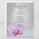 Personalize o elegante Menu de Casamento de Orquídea e Véu Rosa com os nomes da noiva e do noivo, o local do evento e os detalhes da refeição que você servirá no almoço do chá de panela, postar o brunch do casamento ou o janto de recepção do casamento adicionando a salada ou o primeiro curso, o primeiro curso ou o segundo curso e a sobremesa ou o terceiro curso. Este clássico cardápio de casamento florescente apresenta uma fotografia floral de uma flor de orquídea rosa falaenopsis e um véu branco de noiva.