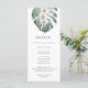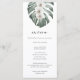 Um elegante design de cardápio para um casamento tropical, praia ou destino, este simples design inclui adoráveis orquídeas brancas sobre uma luxuosa folha de Monstera em tons suaves de água. Um modelo de texto é incluído para personalizar com os itens de menu desejados. Se desejar adicionar ou remover linhas de texto, selecione "clicar para personalizar mais", o que abrirá o modelo de design para permitir edição adicional, realocando o texto etc.