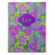 Um caderno bonito em roxos e em verdes vívidos para que você personalize com seu nome, iniciais ou uma palavra especial.