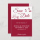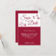 Elegante e romântico Salve a data com um belo e delicado crimson vermelho orquídea desenhando design no topo, sobre um fundo branco clássico. A parte inferior é facilmente personalizável editando os campos modelo com seus nomes, data e local em uma fonte moderna e simples de bonés brancos sobre um simples fundo vermelho escuro. Para mais personalizações ou encomendas personalizadas, contacte-me livremente em acherryonthecake@hotmail.com (permita 1-2 dias úteis). Esse cartão Salvar a Data faz parte da coleção "Orquídeas Delicadas - Suínos Vermelhos Crimson" com muitos itens coordenadores para criar um pacote de casamento exclusivo.
