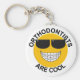 Os Ortodontistas São Legal - Face Com Óculos Solares - presente de Excelente de Chaveiro para dentista ou ortodontista, ou membro do funcionarios dentário. Coloque as teclas do escritório ou do banheiro neste chaveiro exclusivo. Marketing, doação de presente, escritório dentário ou ortodontico, etc. Cara de sorriso amarelo bonito com aparelho e óculos de sol.