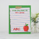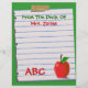As 10 melhores visões da Letterhead do Zazzle! Personalize este fofo personalizado, "Da Mesa de", com qualquer nome neste divertido, rasgado, papel de notebook alinhado gravado em um fundo verde com ABC em letras vermelhas e uma ilustração de maçã vermelha na parte inferior. Ou, simplesmente, deixe de lado o texto. Altere facilmente a cor do plano de fundo e o estilo e cor do texto. Faz um presente personalizado de excelente para os professores. Personalize alguns hoje! Excelente para voltar à escola!