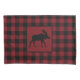 A pintura do Peck de Linda Baysinger de uma silhueta preta de um alce do touro, no fundo vermelho, com verificações do vermelho e do preto em ambos os lados. Peck de Linda Baysinger do © da imagem todos os direitos reservados