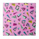 Os anos 80 vibrantes estes o azulejo é glamoroso. Indicado em cima de um fundo cor-de-rosa há as formas coloridas que são formas e tamanhos diferentes. Os artigos são indicados no amarelo, nos azul-céu, no azul de oceano e no fúcsia.