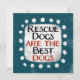 "Cães de Emergência São os Melhores Cães" é um design de texto fofo em negros com texto preto e vermelho, junto com uma forma de sotaque branco e pontos brancos texturizados em volta.