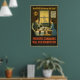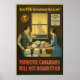 Poster mostra um homem e uma mulher com bolsas de farinha e açúcar guardados olhando para a silhueta de um policial caminhando pela sua janela coberta de cegos. Uma declaração de Comida do Canadá, detalhando multas por açambarcamento, pende na parede. O açambarcamento foi um crime canadiano punível durante a ww1. Alguns arranhões removidos de poster são feitos para manter um aspecto nostático vestido.