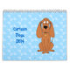 Um calendário do divertimento para 2014 cães bonitos de caracterização dos desenhos animados. Os padrões do fundo estão nas máscaras do azul.