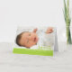 Adicione a foto do seu bebê, os detalhes e uma mensagem pessoal a estes na moda e cartão colorido do anúncio do nascimento.