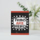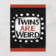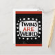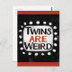 "Gêmeos são esquisitos" é um design de texto bonito em preto com texto preto e vermelho, junto com forma de sotaque branco e pontos brancos texturizados ao seu redor.
