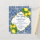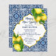 Azulejos azuis e limão Amalfi Positano mediterrânico estilo chá de fraldas convite orçamentário modelo no estilo Marrocos esculpido na fronteira, chá de fraldas de aperto principal da mamãe neutro em relação ao gênero.
