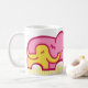 Mostre seu amor à sua mãe com a melhor mãe rosa e elefantes gráficos amarelos abraçando a caneca. Excelente para um presente de dia de as mães. Ilustração exclusiva e design por Sarah Trett.