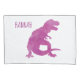 Os miúdos personalizaram a fronha de almofada branca roxa das meninas da silhueta do dinossauro. A parte dianteira do travesseiro tem a silhueta do t-rex e do nome roxos a personalizar. A parte traseira da fronha de almofada é um teste padrão do divertimento de silhuetas cor-de-rosa da aguarela do dinossauro roxo e verde. www.SamAnnDesigns.com