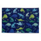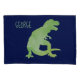 Os miúdos personalizaram a fronha de almofada do azul do verde da silhueta do dinossauro. A parte dianteira do travesseiro tem a silhueta do t-rex e do nome verdes a personalizar. A parte traseira da fronha de almofada é um teste padrão do divertimento de silhuetas da aguarela do dinossauro azul e verde. www.SamAnnDesigns.com