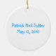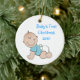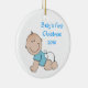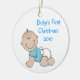 Ornamento redondo da árvore de Natal, com gráficos dos desenhos animados de um bebé. O texto azul na parte dianteira lê o primeiro Natal 2010 do bebê. Personalize o texto na parte de trás do ornamento com nome do seu bebê e data de nascimento. Os primeiros enfeites de natal do grande bebê, e fazem um presente doce demasiado.