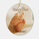 Os primeiros enfeites de natal do bebê com pés pequenos adoráveis do bebê. Personalize ao texto da mudança se você deseja.