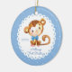 Os primeiros enfeites de natal do bebê caracterizam um grupo pequeno doce do macaco em um fundo azul das bolinhas com um quadro scalloped. Personalize com sua informação do bebê e data e você são todos ajustam-se para ir! Presente datado maravilhoso da lembrança para Natal do seu bebê o ø.