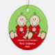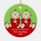 Nossos primeiros enfeites de natal caracterizam um par adorável de gêmeos do bebé ajustados vermelha & verde fundo pontilhado em uma polca! Personalize com sua informação do bebê e data e você são todos ajustam-se para ir! Presente datado maravilhoso da lembrança para Natal do seu bebê o ø.