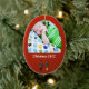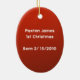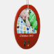 Um grande ornamento para feriado do Natal do bebê o primeiro! Um oval vermelho com os 2 muito bonitos e árvores de Natal lunáticas no texto da parte inferior e do "Natal e do ano". Customizável com a foto do seu bebê.