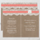 A coleção de casamentos de areia coral e dólar é uma design impressionante que apresenta um adorável fundo de efeito de burlap top rústico com uma trim romântica de efeito de renda branca vintage terminada com uma faixa de areia e coral impressionante. Esses programas podem ser personalizados para sua ocasião especial e fariam a modelo perfeita para casamentos, chás de panela, festas de noivado, festas de aniversário e muito, muito mais. *Observe que o Zazzle só vende produtos impressos para que este item não tenha nenhum material real de burlap, renda, dólar de areia ou fita.