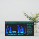 Da Bíblia, o texto do cheio do Santo Matthew 1:23-2:2 a azul contra um fundo preto. A imagem incluída é uma cena singular da Natividade, as personagens são todas feitas em um vidro congelado. A iluminação fez o olhar azul profundo sobre o fundo preto. Veja Maria e José à esquerda, os três sábios à direita com o bebê Jesus deitado em Sua mangueira no centro. O texto em forma de aqua "sábios ainda o procuram" é escrito na parte inferior. Copyright © 2011 Fred Ziegler