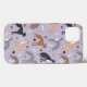 Cães Grisons italianos bonitos sentam-se e ficam de pé com cinzas, casacos pretas, negras, vermelhas e azuis, com ossos de cão espalhados e padrões de pegadas.