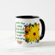 Uma linda caneca floral, criada de marigold e de flores que não me esqueçam, com palavras da Bíblia "Você colocou glória no meu coração" Salmo 68:19