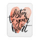 Aqui está um excelente de inspiração que você pode adicionar em qualquer lugar que permita um ímã, como sua geladeira ou talvez um gabinete de arquivos no trabalho. Coração vermelho em água com "Ouça seu coração" na letra moderna do script
