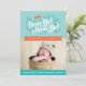Este anúncio de nascimento contém uma letra manuscrita "Ouça Ye! Ouça Ye!" em estilo gótico, com letras negras que combinam com o backer de diamante azul.