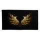 Asas brilhantes e ouros anjos sobre fundo escuro. Asas de ouro.