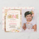 O convite do primeiro aniversario da abóbora rústico cora ouro cor-de-rosa.